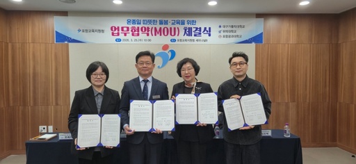 포항교육지원청이 지역 대학과 협력해 초등 돌봄·교육 체계 강화에 나섰다. 교육지원청은 25일 오전 교육장실과 세미나실B에서 '온동네 돌봄·교육센터(늘봄포항)' 운영을 위한 업무협약을 체결했다고 밝혔다.