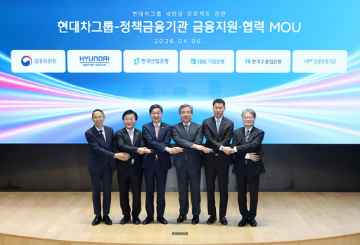 현대차그룹은 6일 서울 여의도 한국산업은행 본관에서 한국산업은행, 중소기업은행, 한국수출입은행, 신용보증기금 등 주요 정책금융기관과 '새만금 프로젝트 관련 현대차그룹·정책금융기관 금융지원·협력 업무협약'을 체결했다. 이는 지난 2월 정부·전라북도와 맺은 투자협약의 후속 조치다.